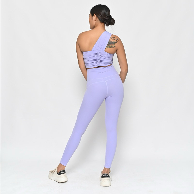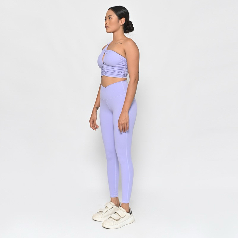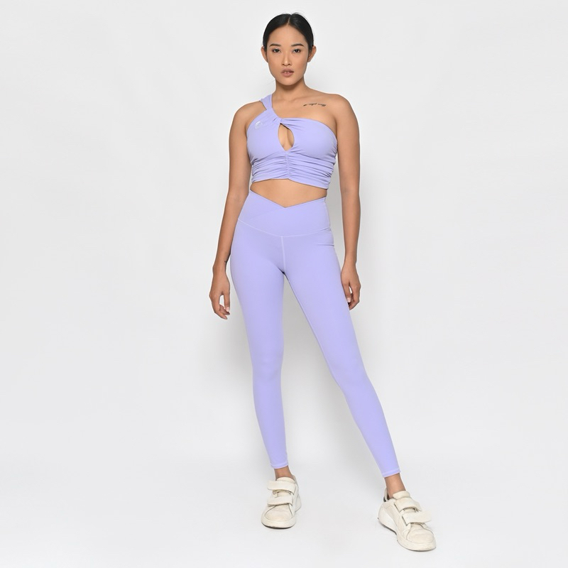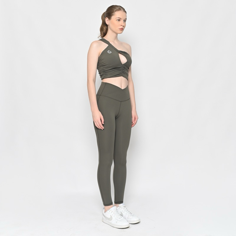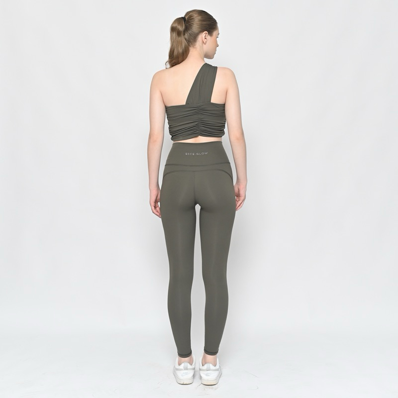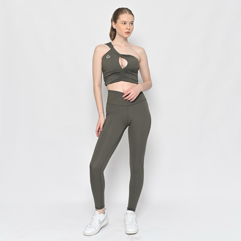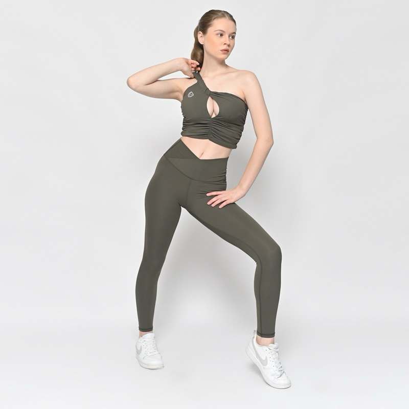 Go right to the top of the class in this workout-ready set featured in a sleek and sultry design with a greek-goddess-style one-shoulder strap bra with ruched and peek-a-boo details in the front. This set also feeatured fashionable high-rise leggings that are both flattering and functional.